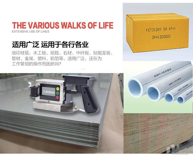 防灰塵,只能手持,水平噴印,適合裝袋前噴印或者是較大物體的噴印,例如包裝紙箱、較大鐵桶、塑料桶、板材、建材等